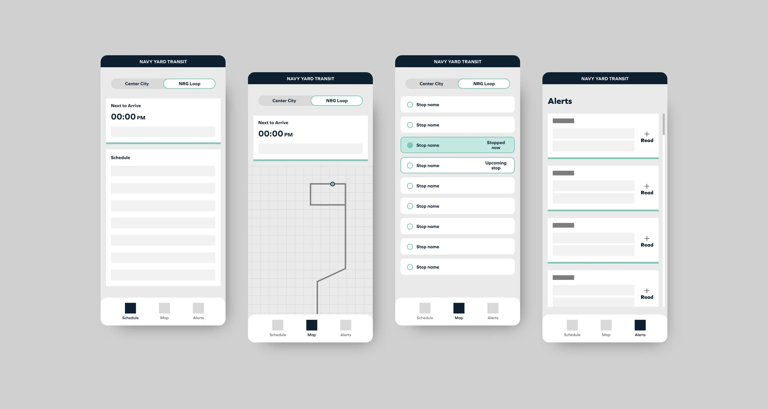 This mobile app helps people track the location of a local commuter shuttle offered by the Philadelphia Navy Yard. The campus resides in South Philadelphia and is siloed from SEPTA transportation.